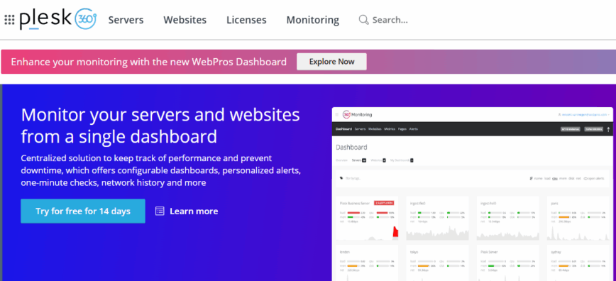 You will receive Monitoring Lite with your 360 subscription, which monitors up to 1 server and 5 sites. If you want to monitor more servers or websites, or you wish to receive messages about alerts, click Monitoring Pro for pricing on additional monitoring.