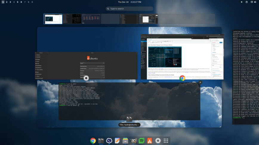 The conversation that started with We need tiling desktop environments has evolved. It turns out we’re not simply chasing the aesthetic of tiled windows; we’re after the workflow improvements . The ability to manage your entire desktop using only the keyboard, to arrange applications across multiple workspaces, and to flip between them in an instant, is the real killer feature!