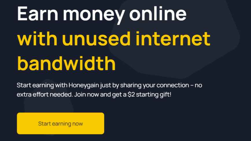 Monetize unused internet bandwidth via residential proxy routing. - Honeygain